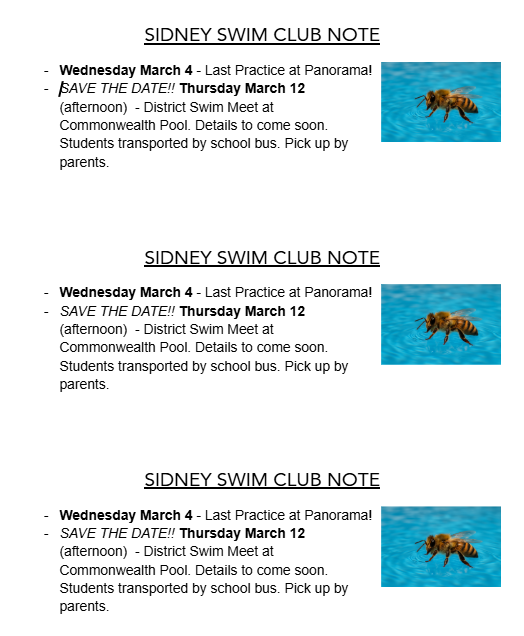 Swim Club - Reminder / Notes